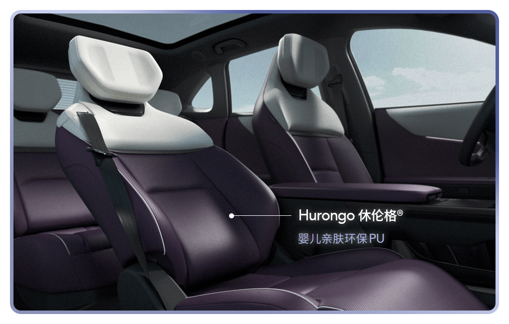 入座,才是故事真正的开始。当指尖第一次触碰内饰,一种温润、柔软的包裹感悄然降临。从座椅到门板,从仪表台到中控区,所有触手可及之处,皆被 Hurongo休伦格®婴儿亲肤环保PU革 温柔覆盖,共同构建“零压座舱”。