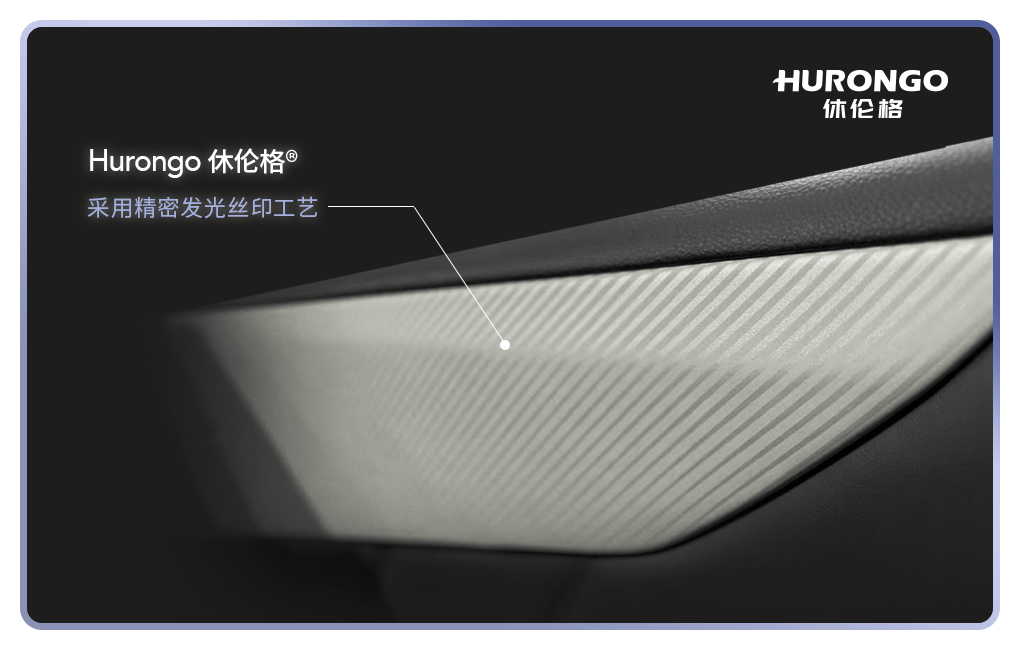 门板处,斜向排列的精密发光丝印线条,仿若一道道“隐藏的光谱”。日常静置时,它呈现细腻的哑光质感,与内饰浑然一体;而当伸手开门,视角转换,光线在棱面上折射、流淌,焕发出如金属拉丝般的优雅亮泽。这一明一暗的变幻,让每一次开门,都成为一场与光影互动的微妙仪式。