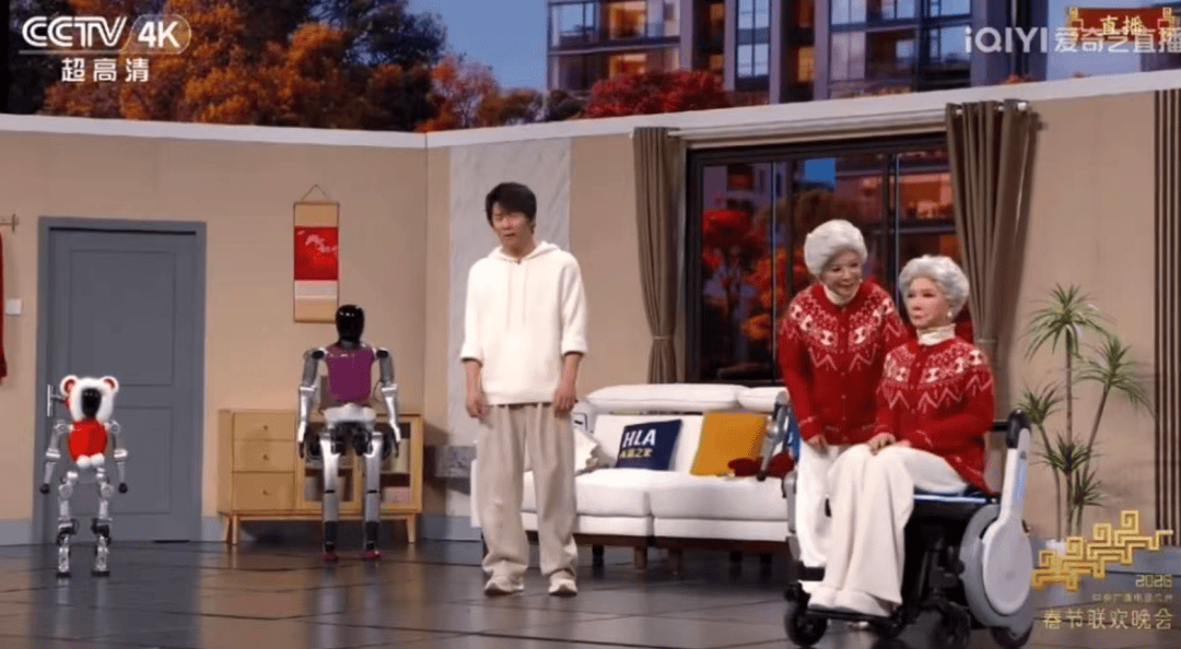 这是机器人首次以“角色”身份介入语言类节目,意味着机器人不再只是舞台背景或舞蹈道具,而是参与到剧情推进和喜剧互动中,对机器人的环境感知、动作响应与演员配合提出了更高要求。