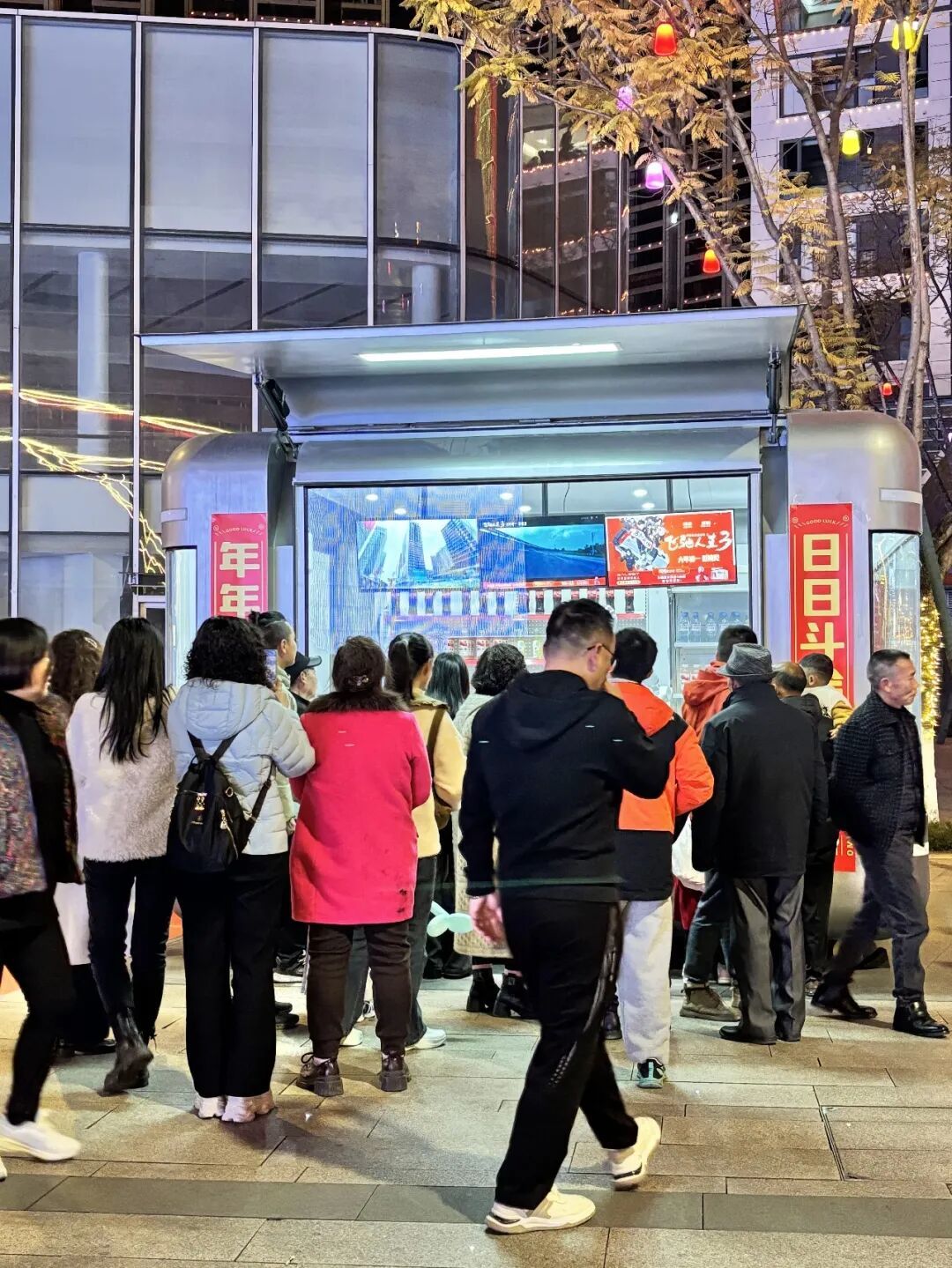 舞台之下,魔法原子的机器狗沿预设路线悄然巡检,是总台春晚宜宾分会场的“特殊演员”;互动体验区内,银河通用的“无人售卖太空舱”前排起长队,机械臂精准抓取饮品,引来阵阵欢呼。