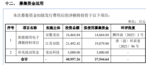 据悉,本次IPO,龙辰科技拟募集资金3.75亿元,将主要用于新能源用电子薄膜材料项目3.45亿元、补充流动资金3000万元。