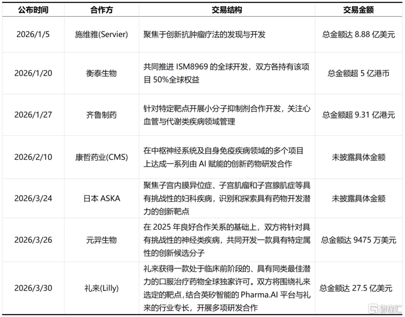 而2025年12月30日登陆港交所后,英矽智能的BD动作更是明显提速。